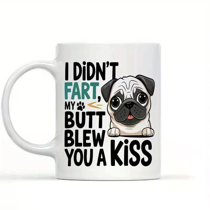 1pc, 11oz Funny Pug Lover Ceramic Mug, I Didn t Fart, My Butt Blew You a Kiss Design, Ideal Gift for Dog Owners,